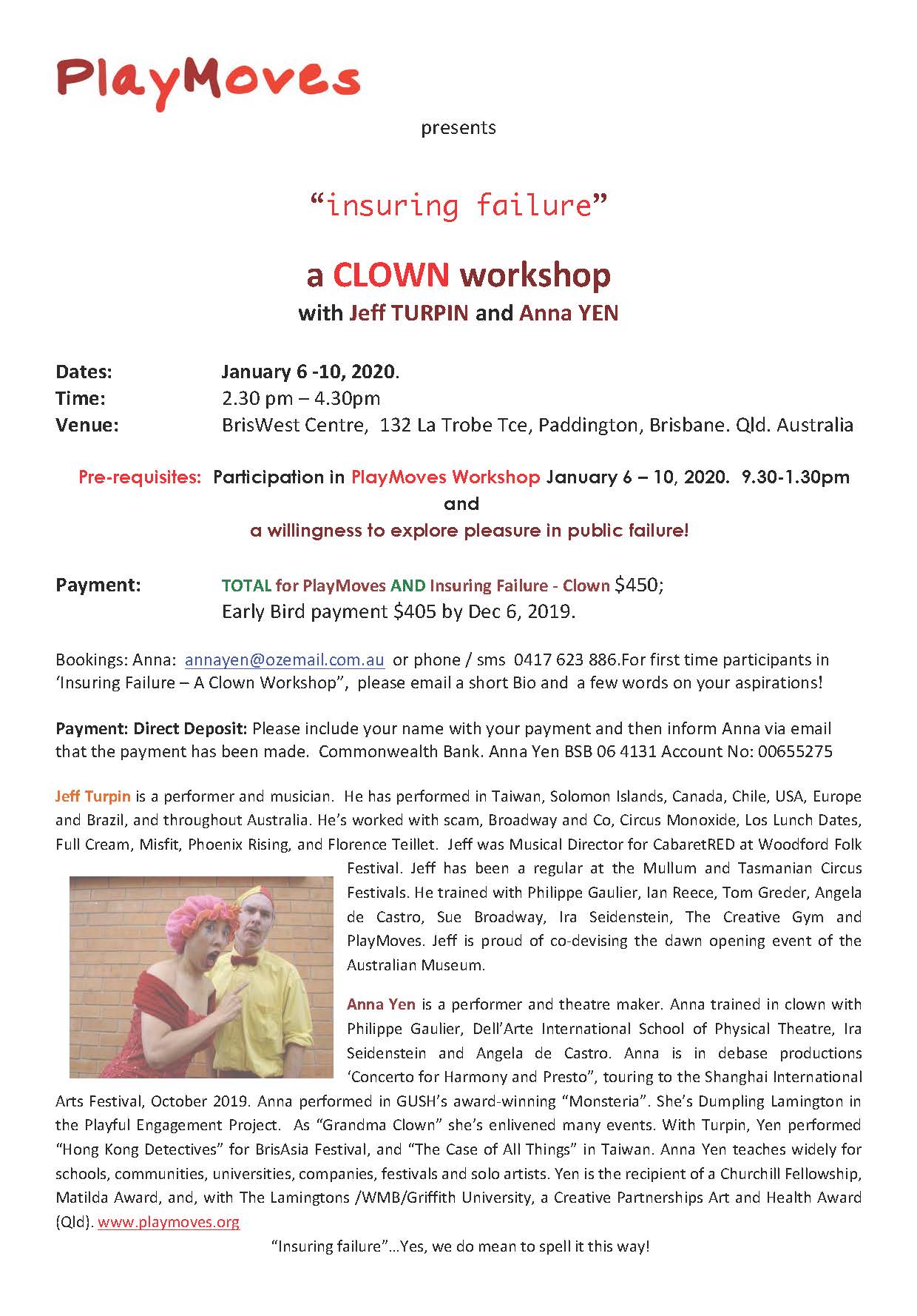 Insuring Failure – Clown Workshop January 7 – 9, 2020.