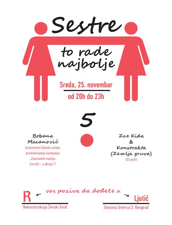 Reconstruction Women’s Fund in the action SISTERS ARE DOING IT BEST 5 this time again brings you actual issues. We shall have an opportunity to hear and learn about the beginning of the campaign “Stop the violence. From words - to action!” led by Autonomous Women’s Center. www.potpisujem.org/srb/