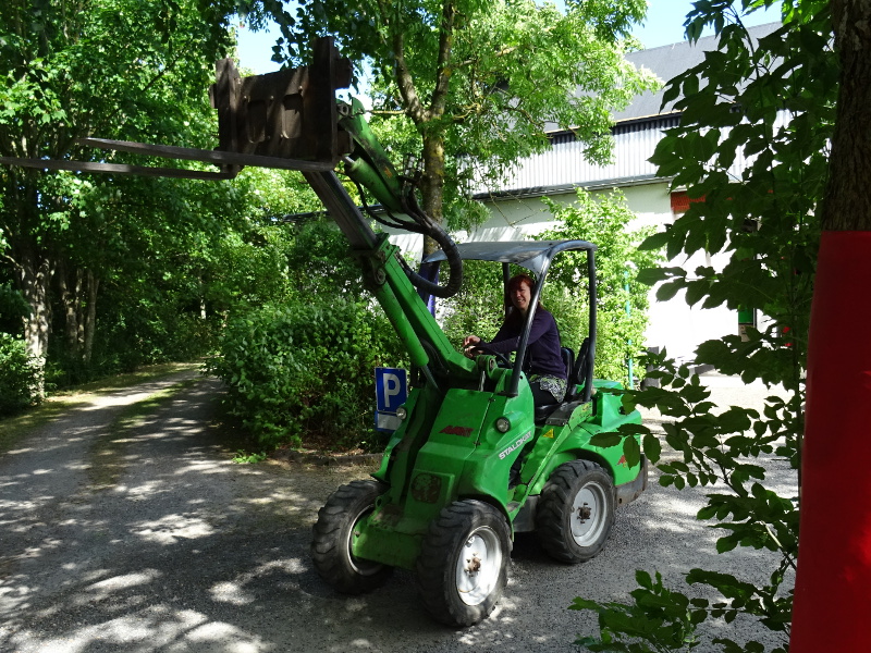 The other highlight was the spontaneous opportunity to drive the forklift. The day after the festival ended, the Odin techs were busy moving things around - loading up a truck with the set of "The Chronic Life" to head off the next day to Romania, and putting things back in the storage area that had been our festival dining room. At one point I came out of the theatre and there was the little forklift, standing in the courtyard. I'd seen Fausto driving it at the end of the previous Transit and had expressed my desire to have a go one day - and this day my wish came true! Did you know that forklifts don't have a break pedal? Just one pedal to go forward and one to reverse. The lever for raising and lowering the fork at the front was a bit more complicated, so I just concentrated on driving. It was a great way to end my fifth Transit experience!
