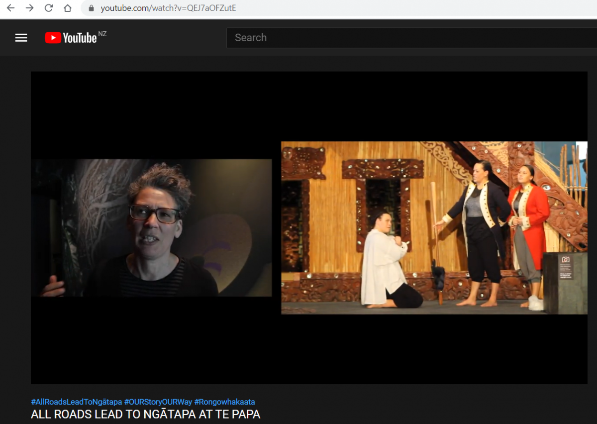 - “All Roads lead to Ngātapa” 2019 Te Papa Tongarewa, Wellington, NZ. Capturas de pantalla del video del Rongowhakaata Iwi Trust.