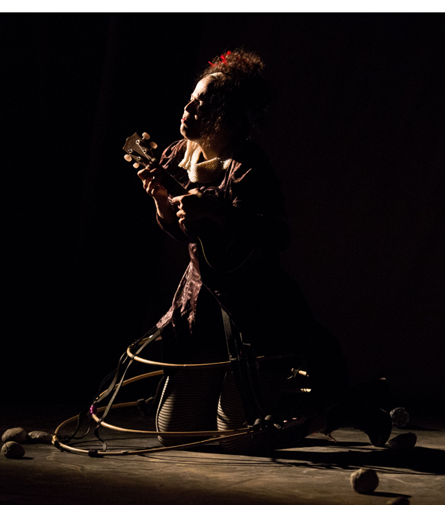 hacia el árbol de feijobas (que, desde tiempos antiguos, alimentaba los placeres y los dolores de su familia) donde vino el momento del encuentro. Ana, por fin una directora, una atenta mirada, que le construyera una casa más sólida a esta muñeca rota. Y así comenzó el proceso vertiginoso en el que años de incubación toman forma en unas semanas. Fue en ese salón que vino a mí una Antigua figura, una vieja. ¿Mi abuela? ¿Una parca? ¿Yo misma con 70 años? Y fue así como encontramos el tiempo del recuerdo en medio de piedras, cenizas y ausencias. Fue así como llegaron los testimonios de las guerras, los lobos que están al acecho… y fue así como llegaron las palabras de Arístides: “mamá, me estoy borrando”…