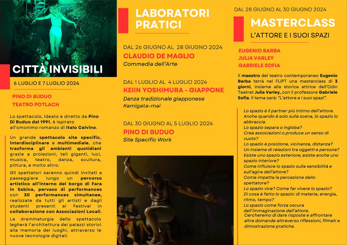 Per 12 giorni il Teatro Potlach ospiterà compagnie, performer, docenti, attori da tutto il mondo: Polonia, Iran, Brasile, Danimarca, Giappone, Sudafrica...insomma il borgo di Fara in Sabina diventerà una vera e propria isola di arti performative!
