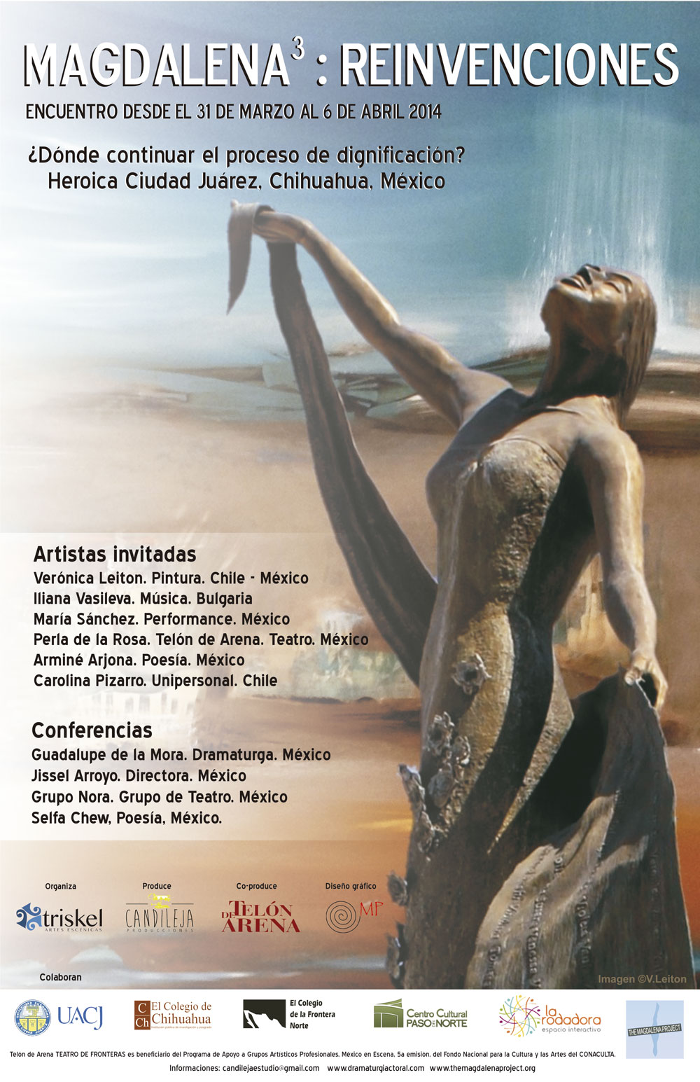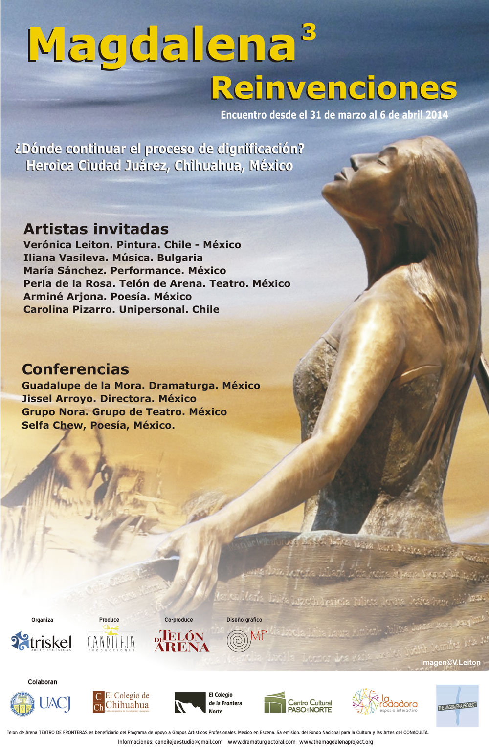 Formará parte do programa: a Celebração dos 30 anos de carreira artística de Verónica Leiton (Chile – México), o Concerto de Iliana Vasileva (Bulgaria), a Performance de María Sánchez (Chihuahua, México), apresentações de teatro da Companhia Telón de Arena (Cd. Juárez, Chih.) e de Triskel Artes Escénicas (Chile); leituras de poesia de Arminé Arjona (Cd. Juárez, Chih.), o encontro com as artistas e conferências do Grupo Nora, Jissel Arroyo e Guadalupe de la Mora (Cd. Juárez, Chih.), assim como, o Seminário “Re-conhecer-se Desprender-se” (Uma ausência muito presente) ministrado pela investigadora teatral chilena Carolina Pizarro, uma das fundadoras desta terceira geração de Magdalena: Magdalena3