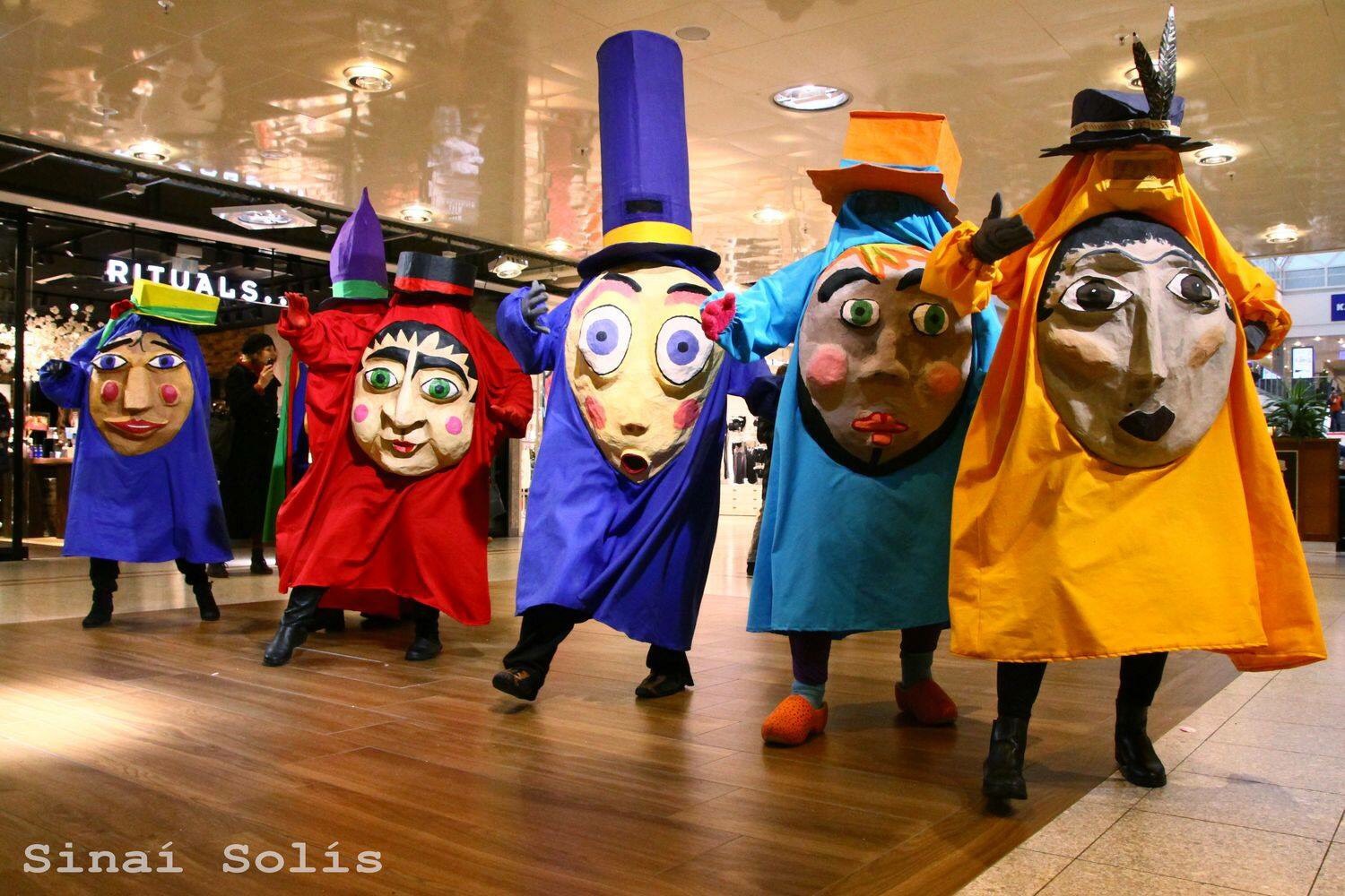 My participation was to perform “Tale 53: Snowhite” for the opening of the Saison at HochX,; perform the same work the next night; conduct a five day bodymask building workshop “Macanudos” finishing with a parade / intervention in a large shopping mall and roundoff with Tale 53 again at Meta Theatrer. All doable. It is often difficult coming to a new place and having to figure out materials etc and all this was cheerfully carried out with Helen and also my workshop assistant Sabine Bollenbach. This was a new workshop so there are always uncertainties. The opening night performance was cancelled because my luggage had not arrived (never fly British Airways) but fortunately it did for the second night, so onwards.