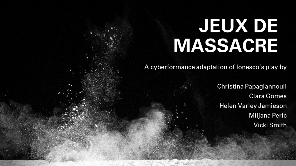 In 1970, absurdist playwright Eugene Ionesco wrote Jeux de Massacre (known in English as The Killing Game or Here Comes a Chopper) – a dark comedy in which the plague ravages a small town and everyone dies. As a new pandemic overwhelms the globe and people rush to isolation and internet communication, it seems appropriate and timely to translate this work from the stage to cyberspace. Christina Papagiannouli (UK/Greece) has teamed up with Clara Gomes (Portugal), Helen Varley Jamieson (Germany/Aotearoa NZ), Miljana Perić (Serbia) and Vicki Smith (Aotearoa NZ) to produce Jeux de Massacre in UpStage and adapt it to current crises.