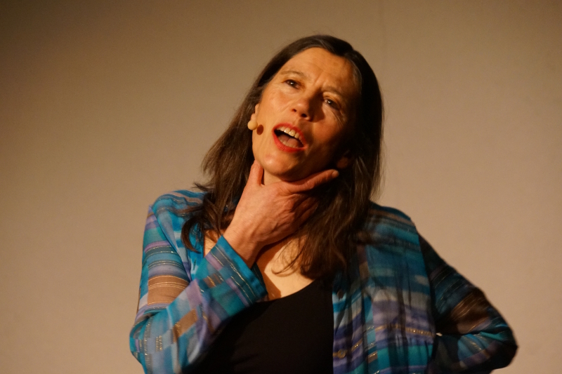 The length of my stay incorporated two solo shows in theatres with excellent acoustics (HochX and Meta Theater) and a singing workshop with a talented international group of artists, theatre makers and singers. Through these activities and at other performances and events, I met a huge range of women creators in Munich as well as international women in residence at the Villa Waldberta. Alongside the individual creativity that each artist is involved in, conversations led to collaborations, and collaborations led to further creativity. Interviews were made, recordings, further collaborations planned, art works created, songs composed and ideas for a voice festival developed. This was a new experience in a Magdalena festival where normally the span of the festival would be ten days or two weeks; artists would be busy preparing their performances or giving workshops, and have little or no time to develop their latest work or to collaborate truly with others in a way that comes naturally out of conversations and meetings over time.